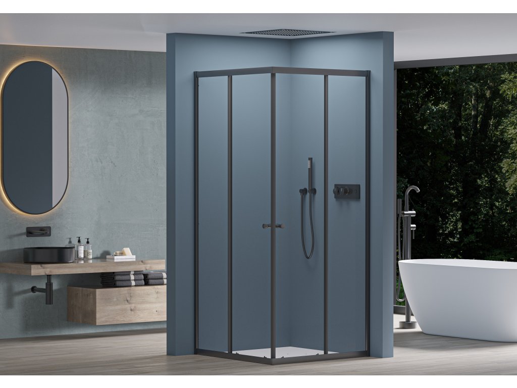 Čierne prvky dodávajú moderný a univerzálny vzhľad, ktorý dobre vyzerá v akomkoľvek štýle vašej kúpeľne. Sprchovací kút má univerzálny profil, ktorý je možné namontovať vpravo alebo vľavo .