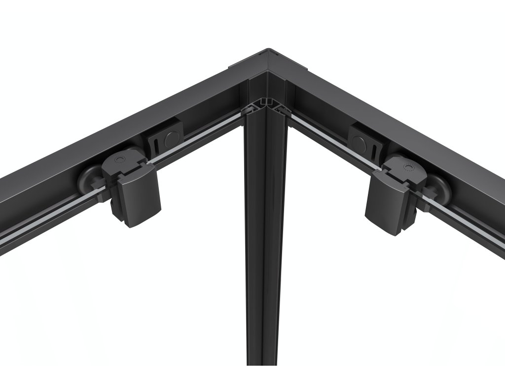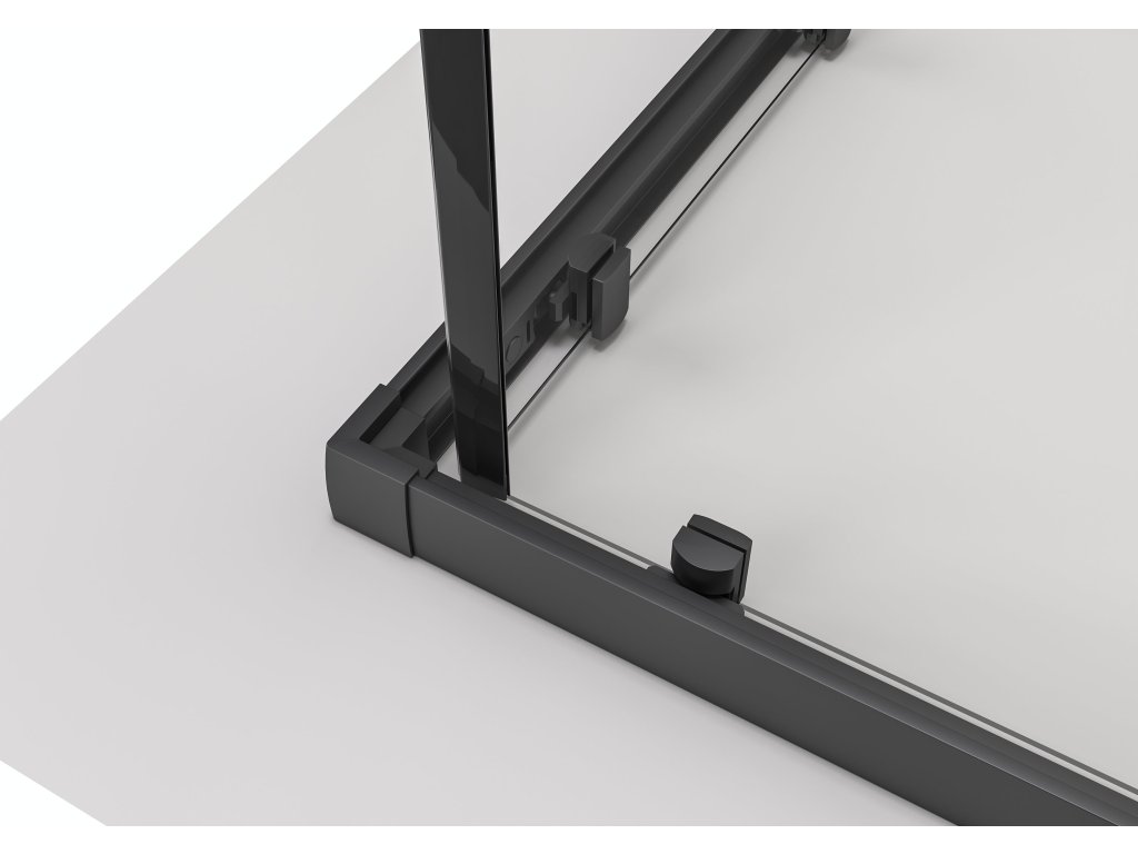 Čierne prvky dodávajú moderný a univerzálny vzhľad, ktorý dobre vyzerá v akomkoľvek štýle vašej kúpeľne. Sprchovací kút má univerzálny profil, ktorý je možné namontovať vpravo alebo vľavo .