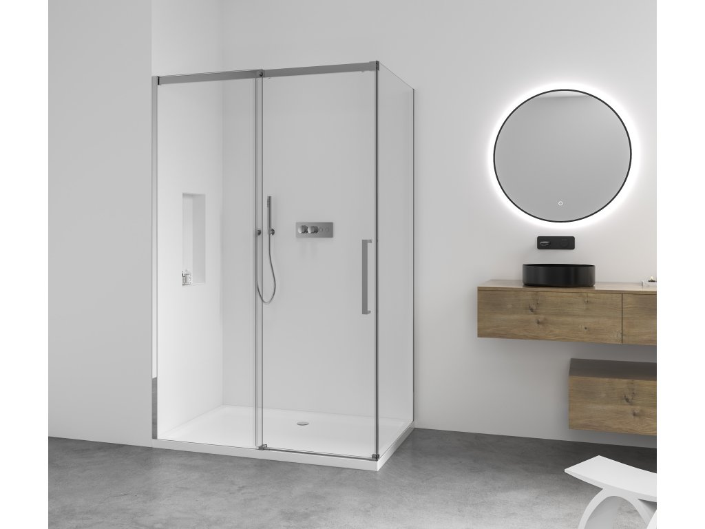 CERANO - Sprchovací kút Lantono L/P - 8 mm - Soft-Close - chróm, transparentné sklo - 140x80x195 cm - posuvný