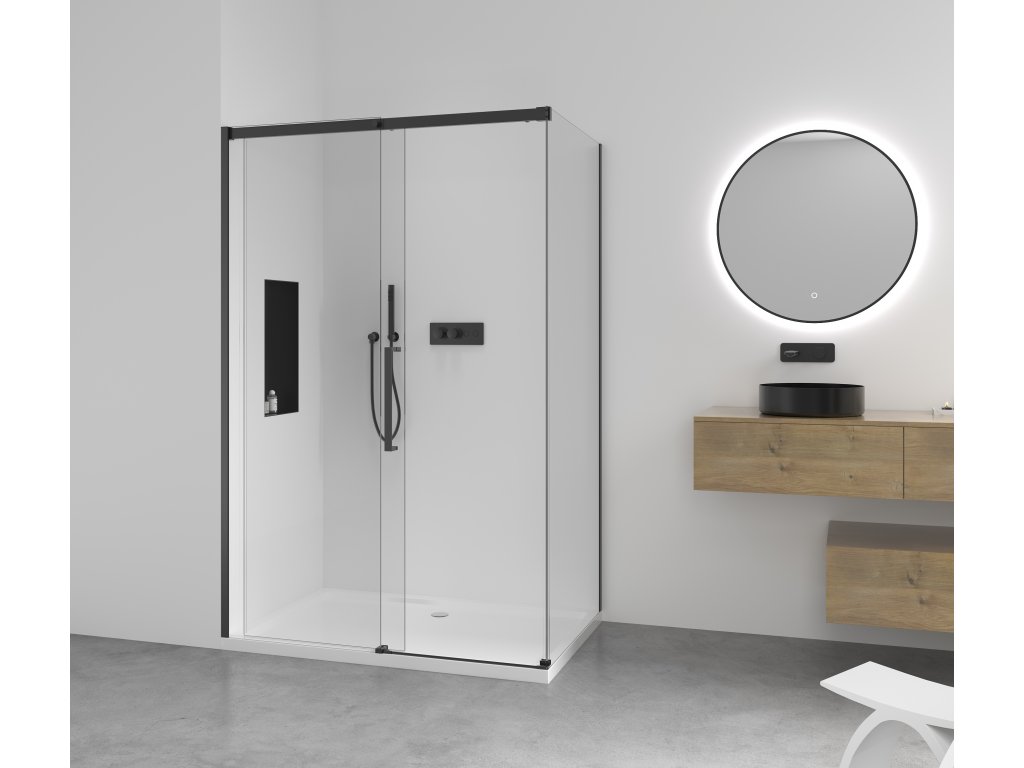 CERANO - Sprchovací kút Lantono L/P - 8 mm - Soft-Close - čierna matná, transparentné sklo - 120x80x195 cm - posuvný
