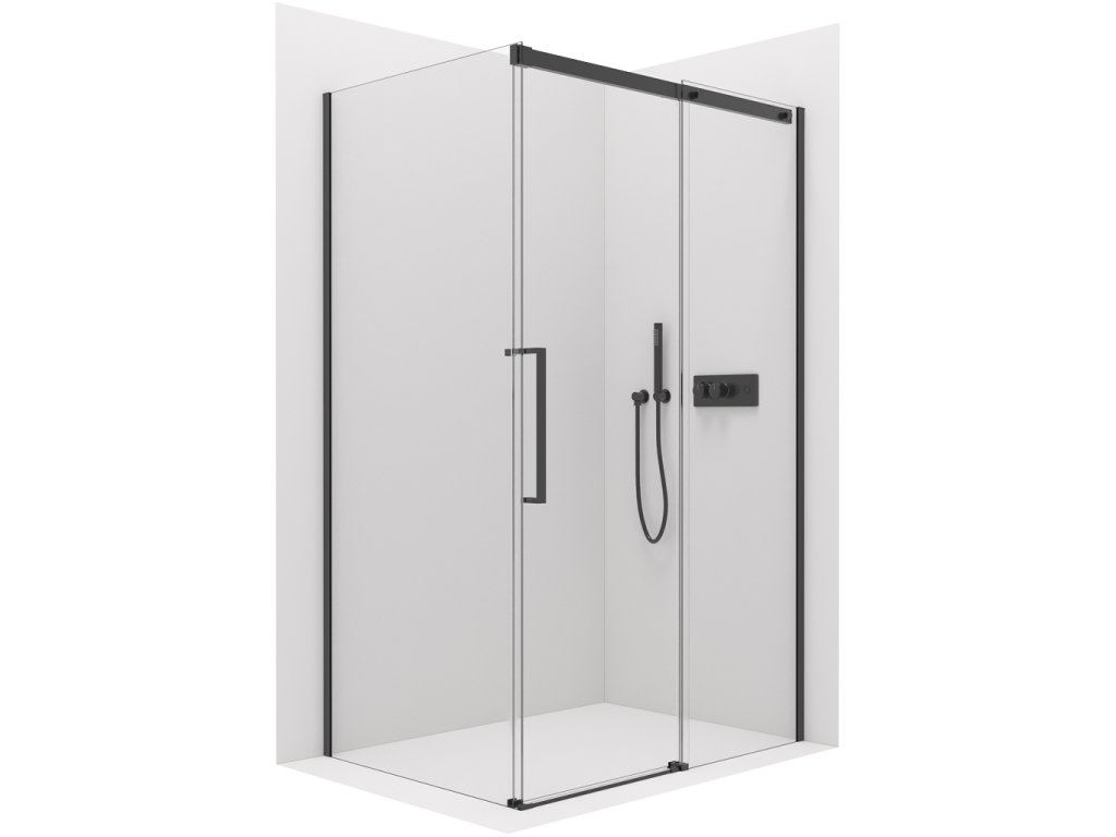 CERANO - Sprchovací kút Lantono L/P - 8 mm - Soft-Close - čierna matná, transparentné sklo - 140x80x195 cm - posuvný