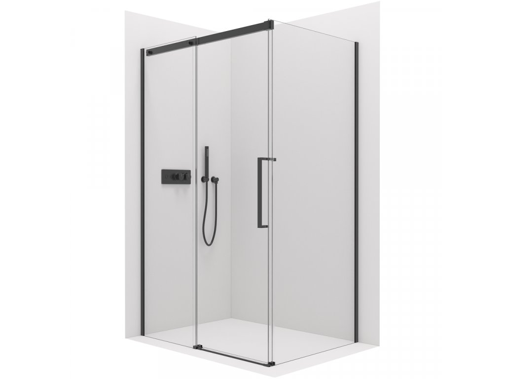 CERANO - Sprchovací kút Lantono L/P - 8 mm - Soft-Close - čierna matná, transparentné sklo - 160x80x195 cm - posuvný