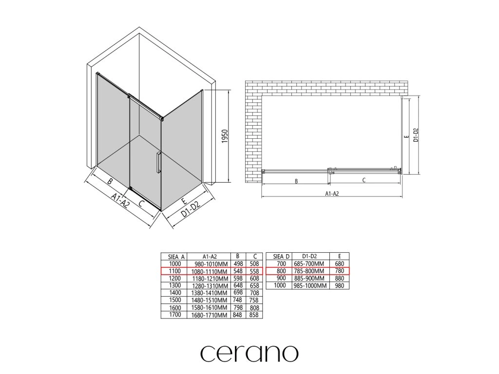 V rámci tejto série ponúkame širokú škálu rozmerov, aby sme uspokojili rôzne potreby našich zákazníkov. Všetky sprchové kúty, dvere a zásteny značky CERANO sú plne kompatibilné so sprchovými vaničkami CERANO v rovnakých rozmeroch, čo zaisťuje bezproblémovú inštaláciu a dokonalé zladenie. Sprchovací kút je možné navyše inštalovať flexibilne – buď na zodpovedajúcu sprchovú vaničku, alebo priamo na podlahu podľa vašich preferencií a možností kúpeľne.