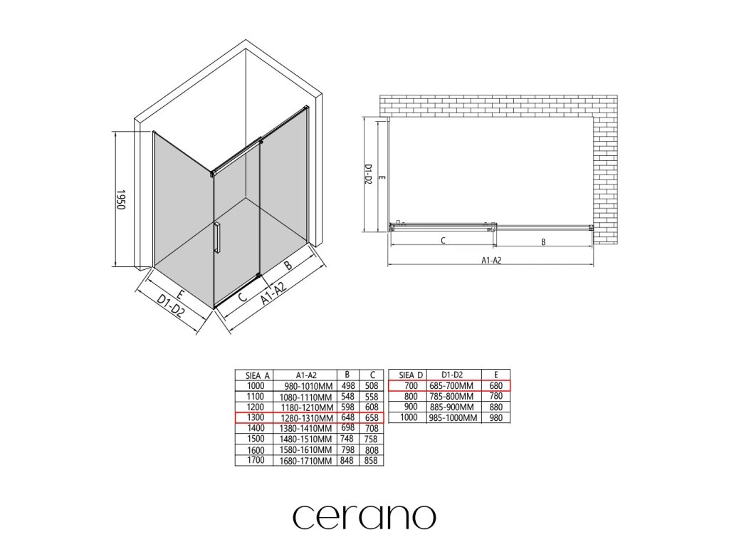 V rámci tejto série ponúkame širokú škálu rozmerov, aby sme uspokojili rôzne potreby našich zákazníkov. Všetky sprchové kúty, dvere a zásteny značky CERANO sú plne kompatibilné so sprchovými vaničkami CERANO v rovnakých rozmeroch, čo zaisťuje bezproblémovú inštaláciu a dokonalé zladenie. Sprchovací kút je možné navyše inštalovať flexibilne – buď na zodpovedajúcu sprchovú vaničku, alebo priamo na podlahu podľa vašich preferencií a možností kúpeľne.