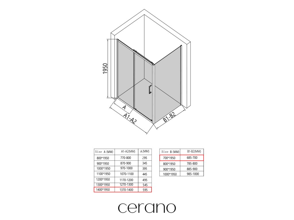 CERANO - Sprchovací kút Orlano Ľ/P - 5 mm - chróm, transparentné sklo - 140x70x195 cm - posuvný