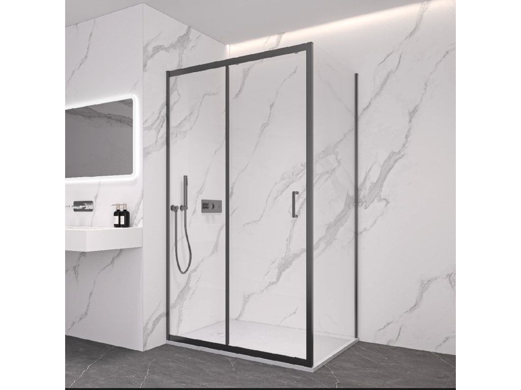 CERANO - Sprchovací kút Orlano L/P - 5 mm - čierna matná, transparentné sklo - 100x90x195 cm - posuvný
