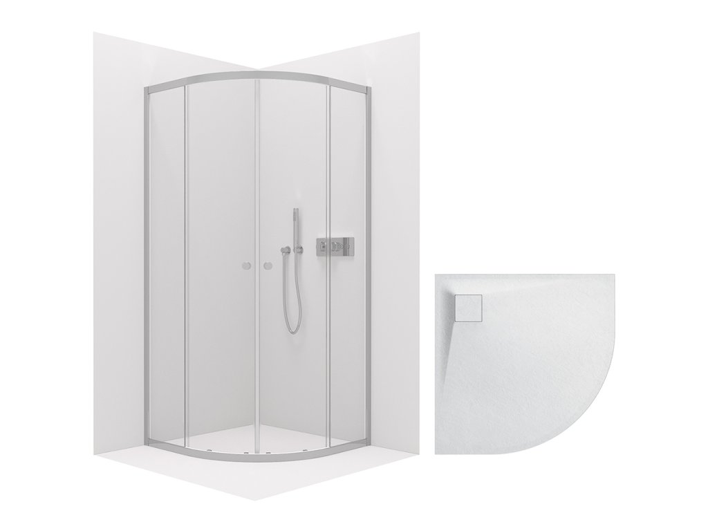 CERANO - Sprchovací kút Orso L/P 5 mm - R550 - chróm + CERANO - Sprchová vanička Quarto - R550 - štruktúrovaná biela matná - 90x90 cm