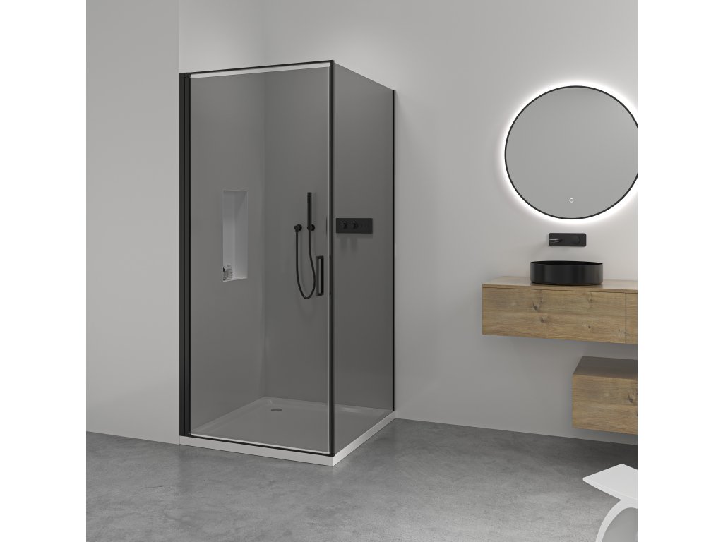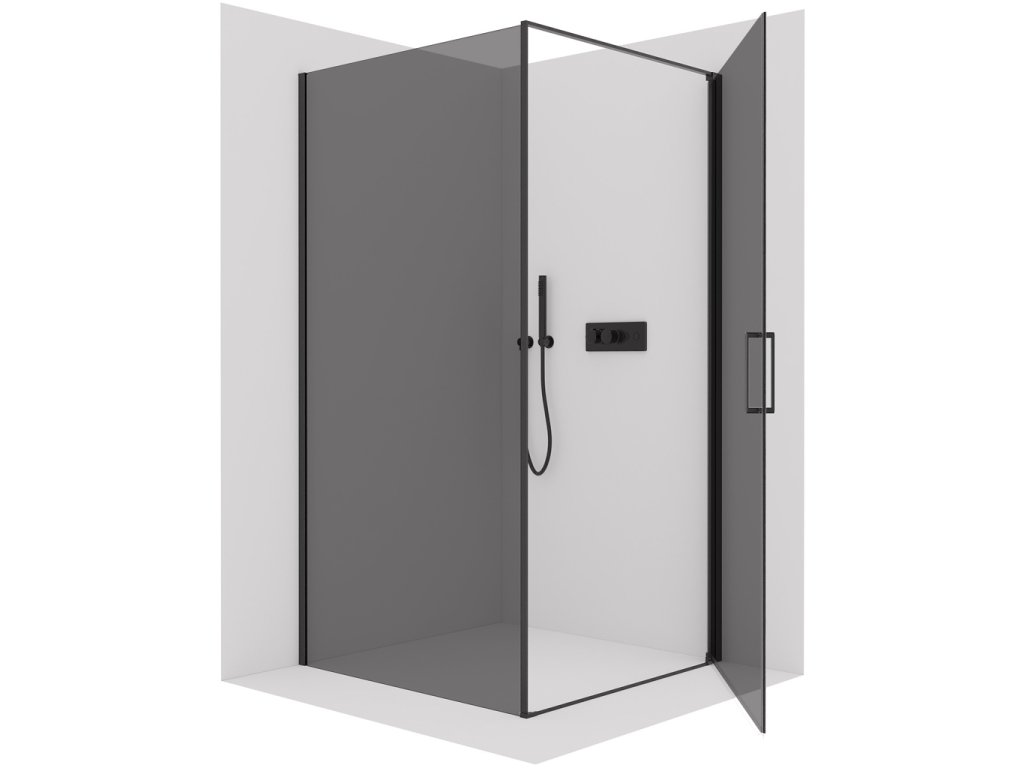 CERANO - Sprchovací kút Porte Ľ/P - 8 mm - čierna matná, grafitové sklo - 80x80x195 cm - otočný