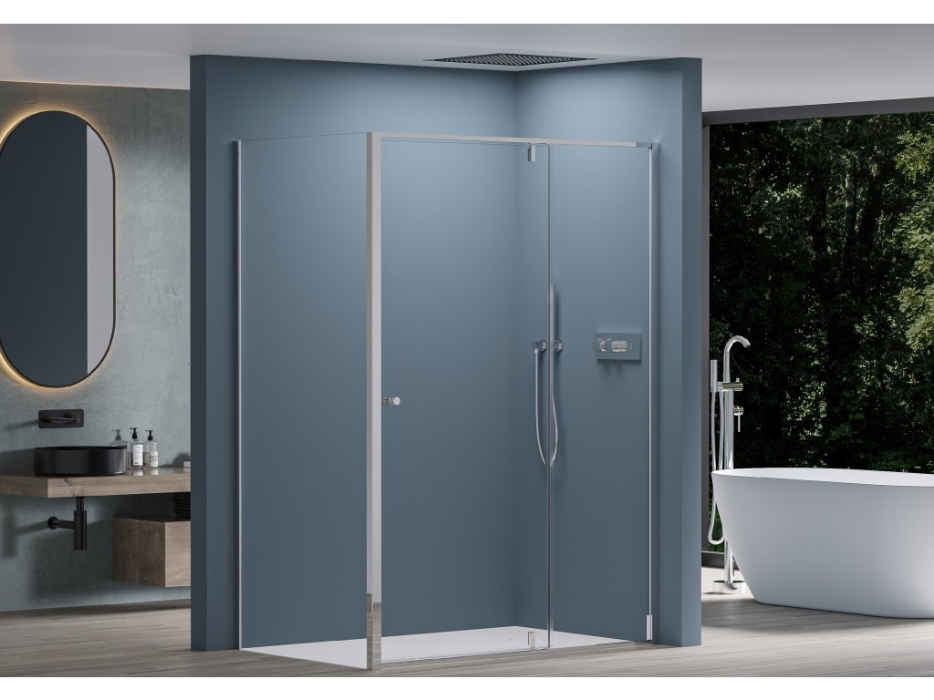 CERANO - Sprchovací kút Santini Ľ/P - 6 mm - chróm, transparentné sklo - 140x80x195 cm - pivotový