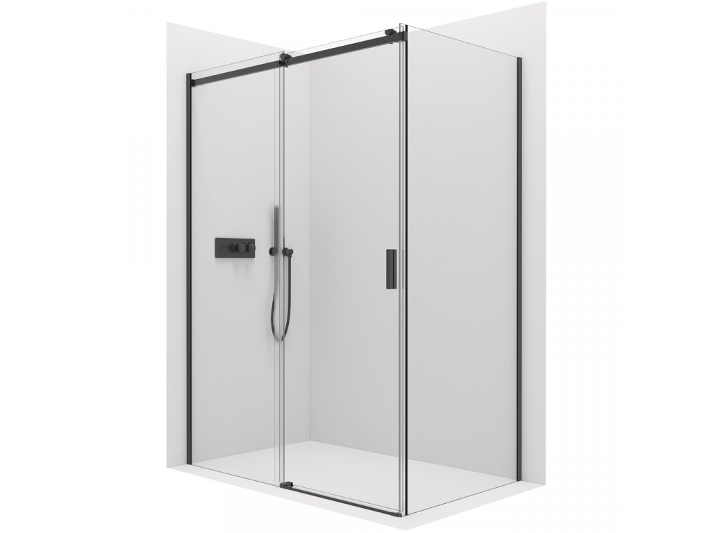 CERANO - Sprchovací kút Santoro Ľ/P - 6 mm - čierna matná, transparentné sklo - 130x70x195 cm - posuvný