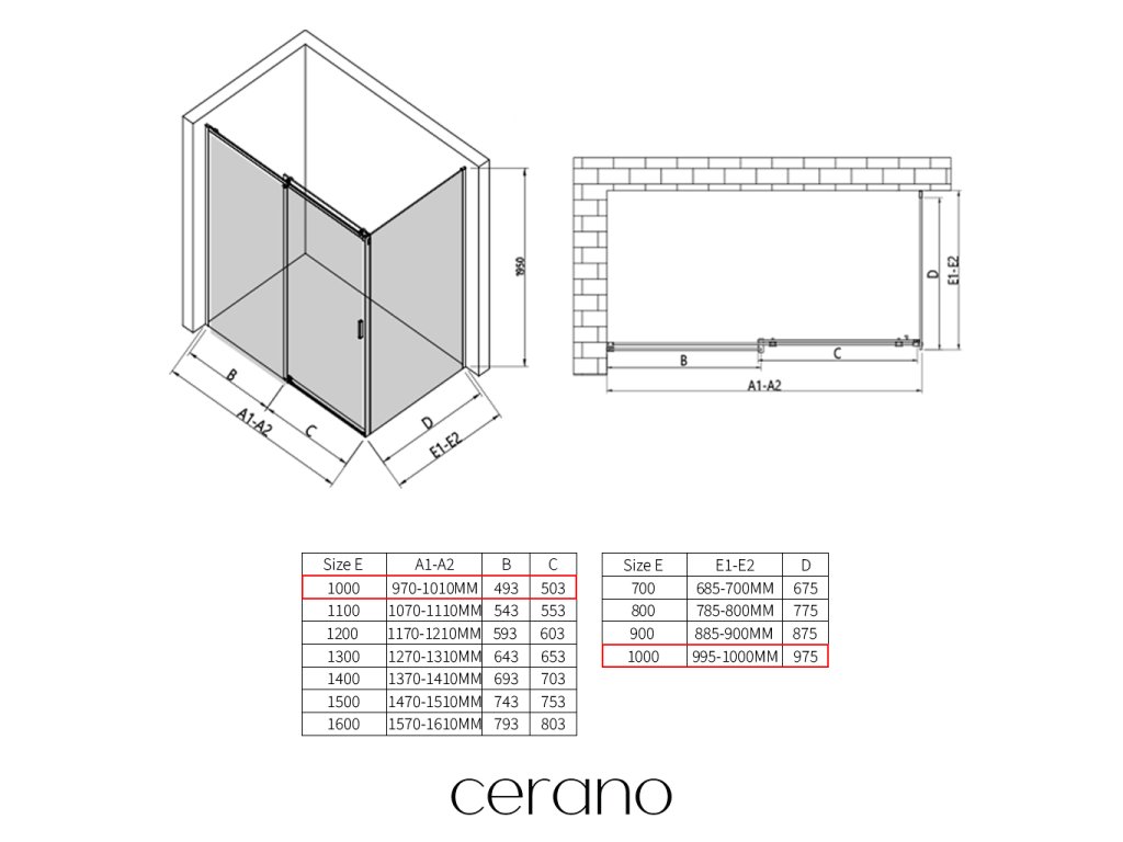 V rámci tejto série ponúkame širokú škálu rozmerov, aby sme uspokojili rôzne potreby našich zákazníkov. Všetky sprchové kúty, dvere a zásteny značky CERANO sú plne kompatibilné so sprchovými vaničkami CERANO v rovnakých rozmeroch, čo zaisťuje bezproblémovú inštaláciu a dokonalé zladenie. Sprchovací kút je možné navyše inštalovať flexibilne – buď na zodpovedajúcu sprchovú vaničku, alebo priamo na podlahu podľa vašich preferencií a možností kúpeľne.