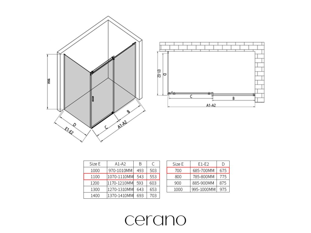 V rámci tejto série ponúkame širokú škálu rozmerov, aby sme uspokojili rôzne potreby našich zákazníkov. Všetky sprchové kúty, dvere a zásteny značky CERANO sú plne kompatibilné so sprchovými vaničkami CERANO v rovnakých rozmeroch, čo zaisťuje bezproblémovú inštaláciu a dokonalé zladenie. Sprchovací kút je možné navyše inštalovať flexibilne – buď na zodpovedajúcu sprchovú vaničku, alebo priamo na podlahu podľa vašich preferencií a možností kúpeľne.