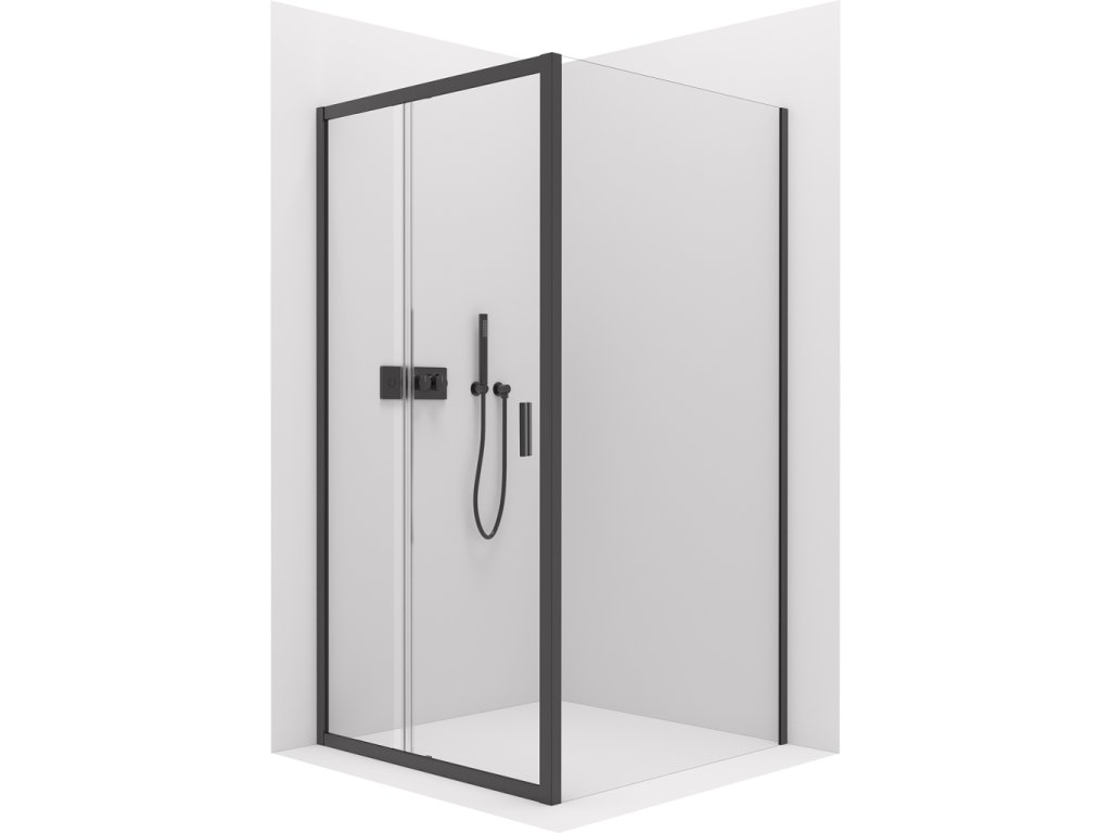 CERANO - Sprchovací kút Varone LINE Ľ/P - 6 mm - čierna matná, transparentné sklo - 100x80x195 cm - posuvný
