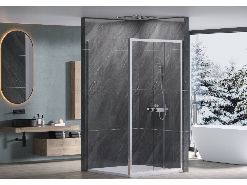 CERANO - Sprchovací kút Varone POINT Ľ/P - 6 mm - chróm, transparentné sklo - 100x90x195 cm - posuvný