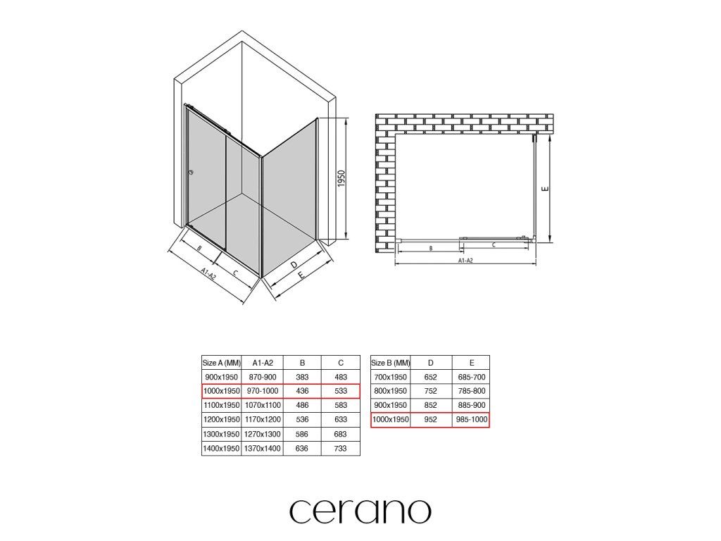 V rámci tejto série ponúkame širokú škálu rozmerov, aby sme uspokojili rôzne potreby našich zákazníkov. Všetky sprchové kúty, dvere a zásteny značky CERANO sú plne kompatibilné so sprchovými vaničkami CERANO v rovnakých rozmeroch, čo zaisťuje bezproblémovú inštaláciu a dokonalé zladenie. Sprchovací kút je možné navyše inštalovať flexibilne – buď na zodpovedajúcu sprchovú vaničku, alebo priamo na podlahu podľa vašich preferencií a možností kúpeľne.