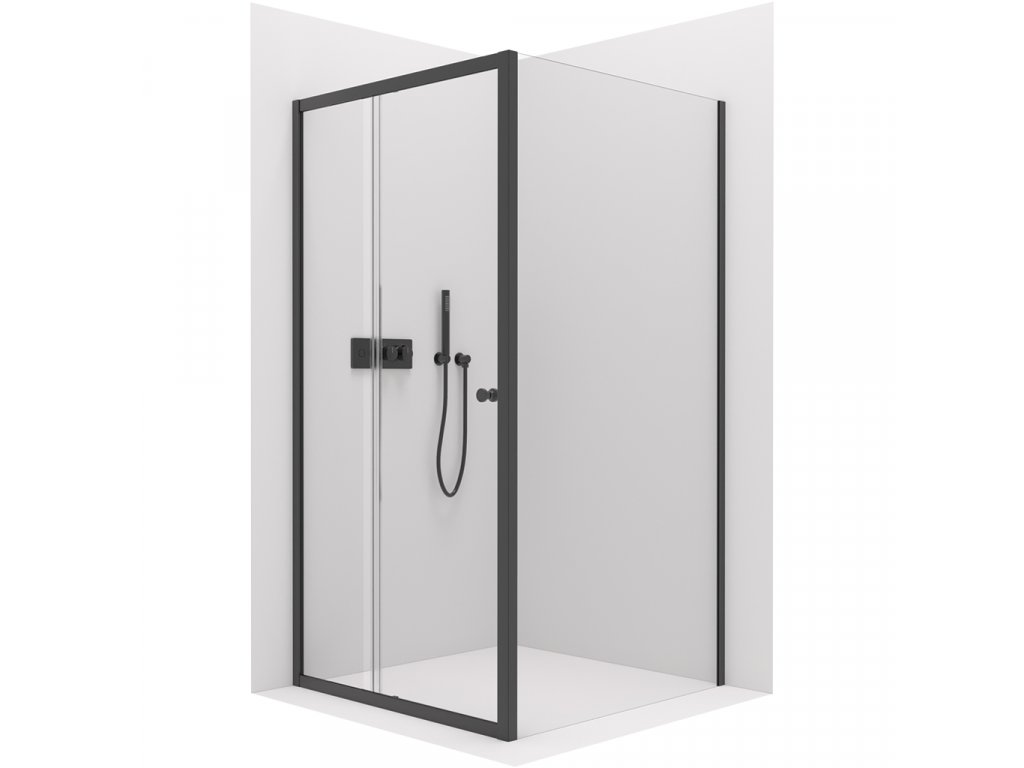 CERANO - Sprchovací kút Varone POINT Ľ/P - 6 mm - čierna matná, transparentné sklo - 110x90x195 cm - posuvný