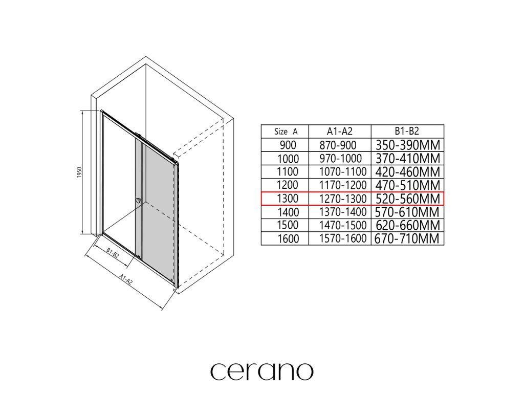 V rámci tejto série ponúkame širokú škálu rozmerov, aby sme uspokojili rôzne potreby našich zákazníkov. Všetky sprchové kúty, dvere a zásteny značky CERANO sú plne kompatibilné so sprchovými vaničkami CERANO v rovnakých rozmeroch, čo zaisťuje bezproblémovú inštaláciu a dokonalé zladenie. Sprchovací kút je možné navyše inštalovať flexibilne – buď na zodpovedajúcu sprchovú vaničku, alebo priamo na podlahu podľa vašich preferencií a možností kúpeľne.