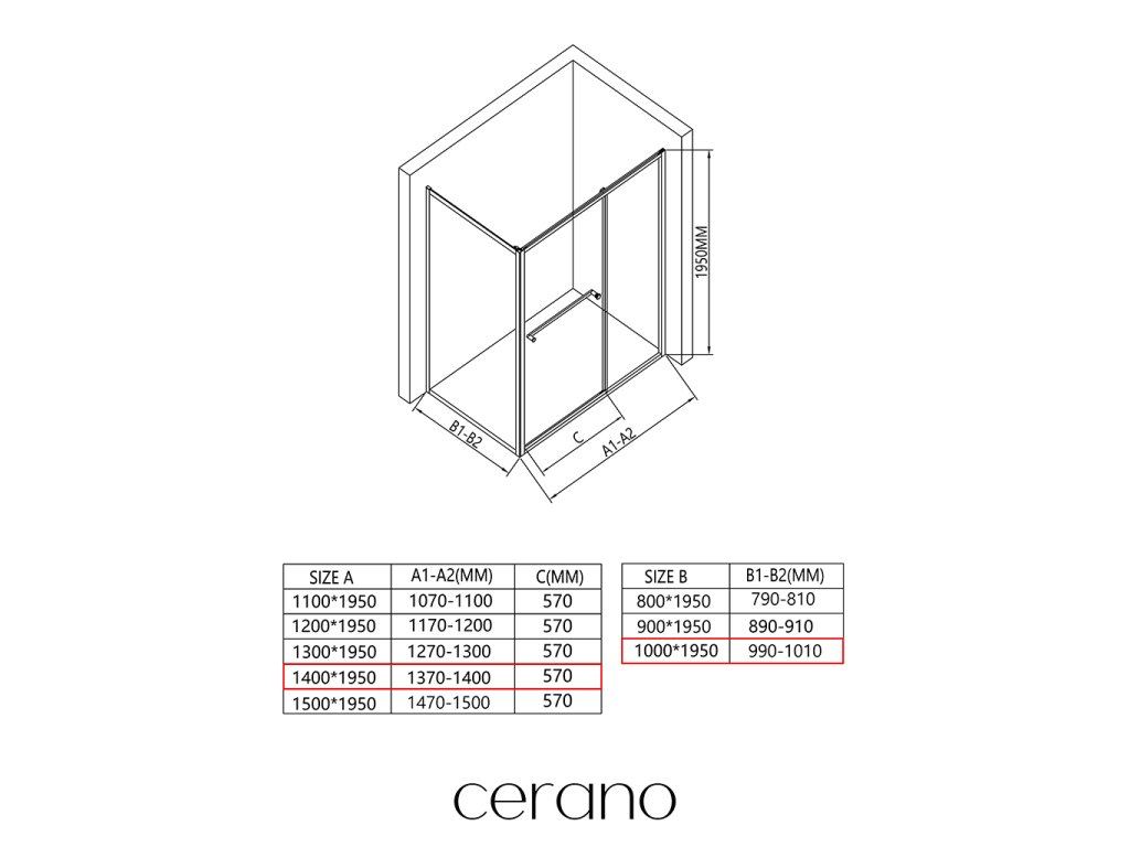 V rámci tejto série ponúkame širokú škálu rozmerov, aby sme uspokojili rôzne potreby našich zákazníkov. Všetky sprchové kúty, dvere a zásteny značky CERANO sú plne kompatibilné so sprchovými vaničkami CERANO v rovnakých rozmeroch, čo zaisťuje bezproblémovú inštaláciu a dokonalé zladenie. Sprchovací kút je možné navyše inštalovať flexibilne – buď na zodpovedajúcu sprchovú vaničku, alebo priamo na podlahu podľa vašich preferencií a možností kúpeľne.