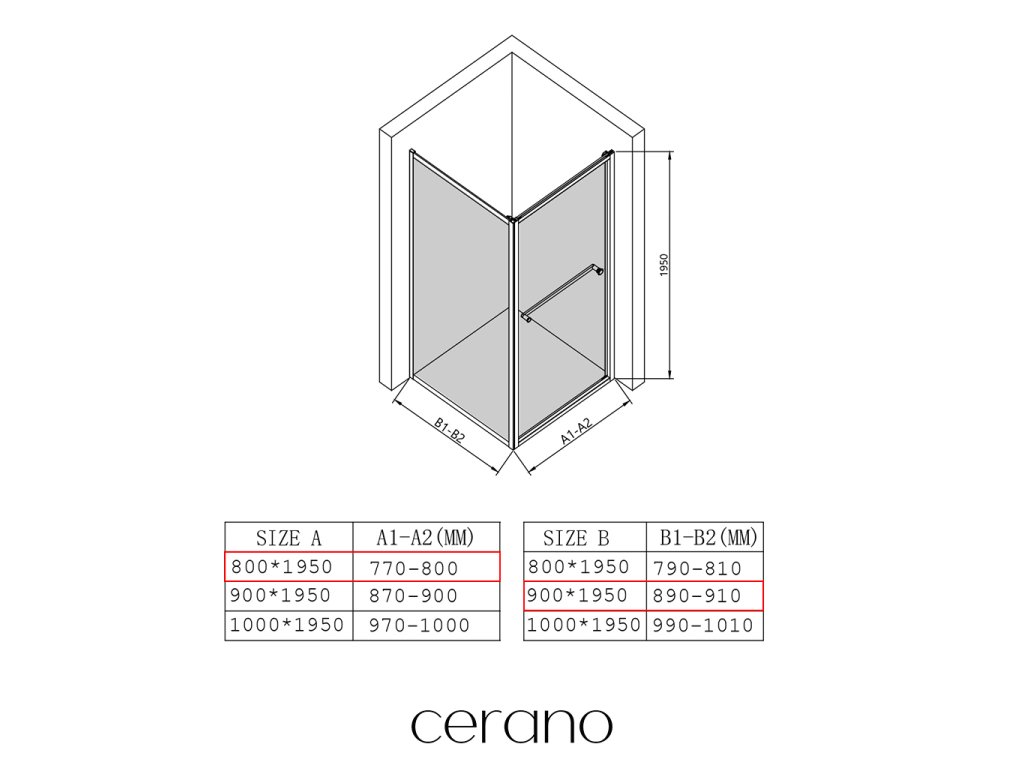 V rámci tejto série ponúkame širokú škálu rozmerov, aby sme uspokojili rôzne potreby našich zákazníkov. Všetky sprchové kúty, dvere a zásteny značky CERANO sú plne kompatibilné so sprchovými vaničkami CERANO v rovnakých rozmeroch, čo zaisťuje bezproblémovú inštaláciu a dokonalé zladenie. Sprchovací kút je možné navyše inštalovať flexibilne – buď na zodpovedajúcu sprchovú vaničku, alebo priamo na podlahu podľa vašich preferencií a možností kúpeľne.