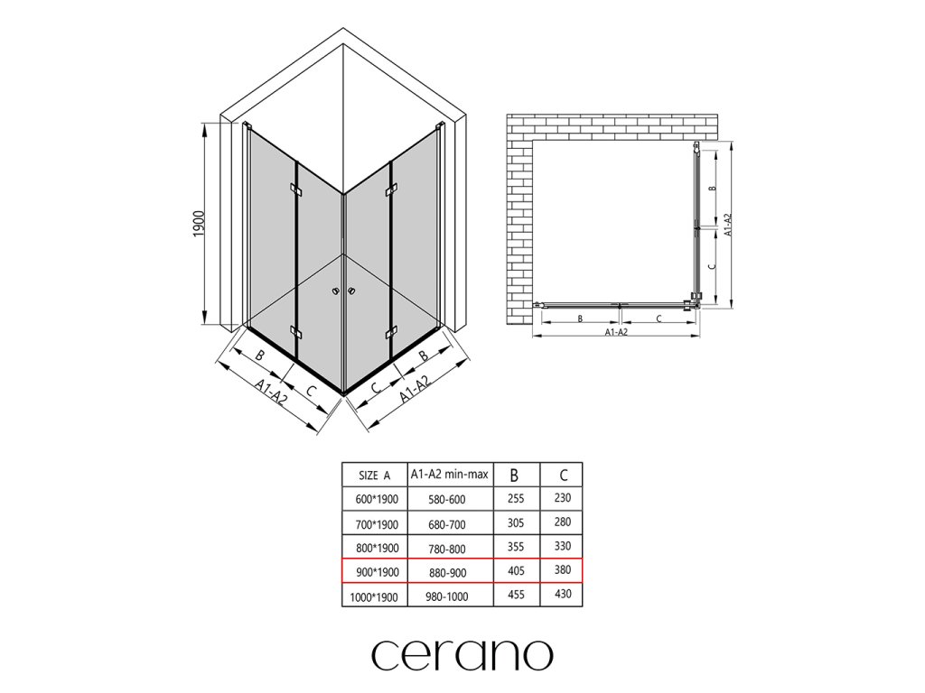 V rámci tejto série ponúkame širokú škálu rozmerov, aby sme uspokojili rôzne potreby našich zákazníkov. Všetky sprchové kúty, dvere a zásteny značky Cerano sú plne kompatibilné so sprchovými vaničkami Cerano v rovnakých rozmeroch, čo zaisťuje bezproblémovú inštaláciu a dokonalé zladenie. Sprchovací kút je možné navyše inštalovať flexibilne – buď na zodpovedajúcu sprchovú vaničku, alebo priamo na podlahu podľa vašich preferencií a možností kúpeľne.