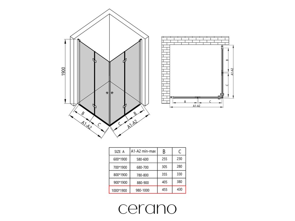 V rámci tejto série ponúkame širokú škálu rozmerov, aby sme uspokojili rôzne potreby našich zákazníkov. Všetky sprchové kúty, dvere a zásteny značky Cerano sú plne kompatibilné so sprchovými vaničkami Cerano v rovnakých rozmeroch, čo zaisťuje bezproblémovú inštaláciu a dokonalé zladenie. Sprchovací kút je možné navyše inštalovať flexibilne – buď na zodpovedajúcu sprchovú vaničku, alebo priamo na podlahu podľa vašich preferencií a možností kúpeľne.