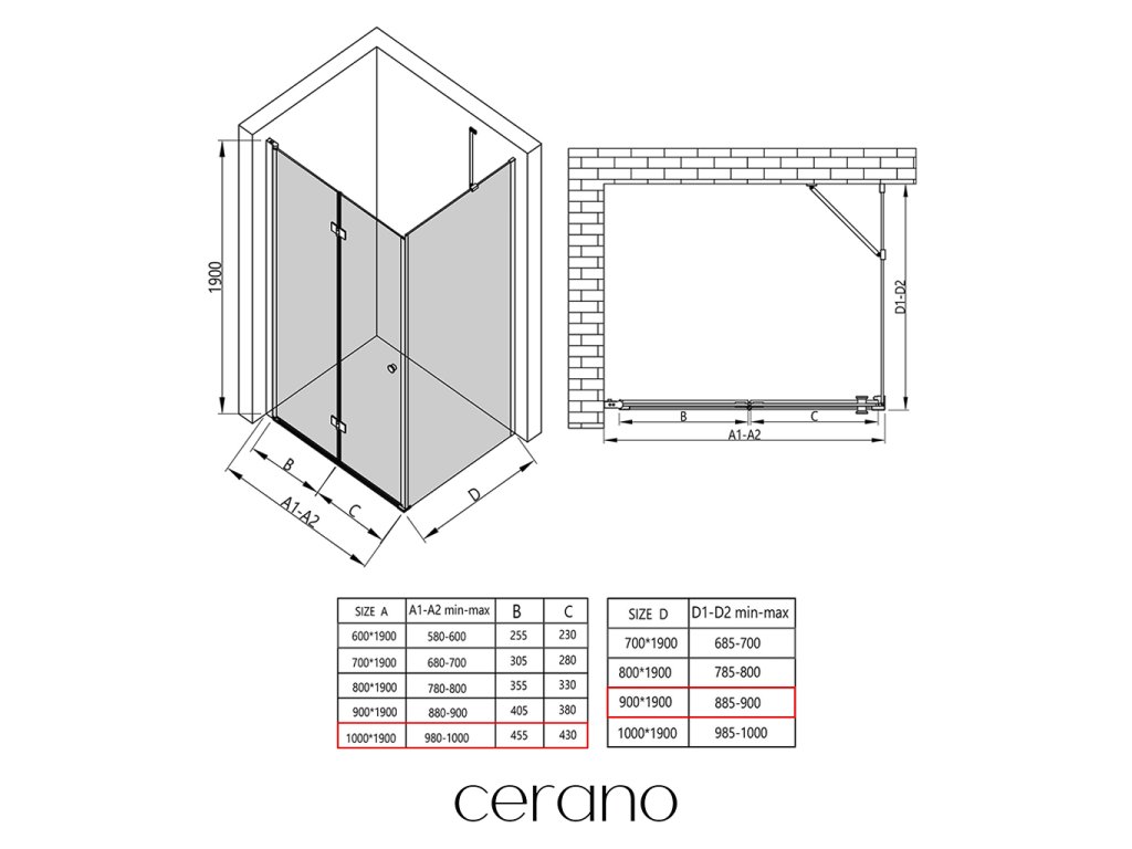 V rámci tejto série ponúkame širokú škálu rozmerov, aby sme uspokojili rôzne potreby našich zákazníkov. Všetky sprchové kúty, dvere a zásteny značky Cerano sú plne kompatibilné so sprchovými vaničkami Cerano v rovnakých rozmeroch, čo zaisťuje bezproblémovú inštaláciu a dokonalé zladenie. Sprchovací kút je možné navyše inštalovať flexibilne – buď na zodpovedajúcu sprchovú vaničku, alebo priamo na podlahu podľa vašich preferencií a možností kúpeľne.