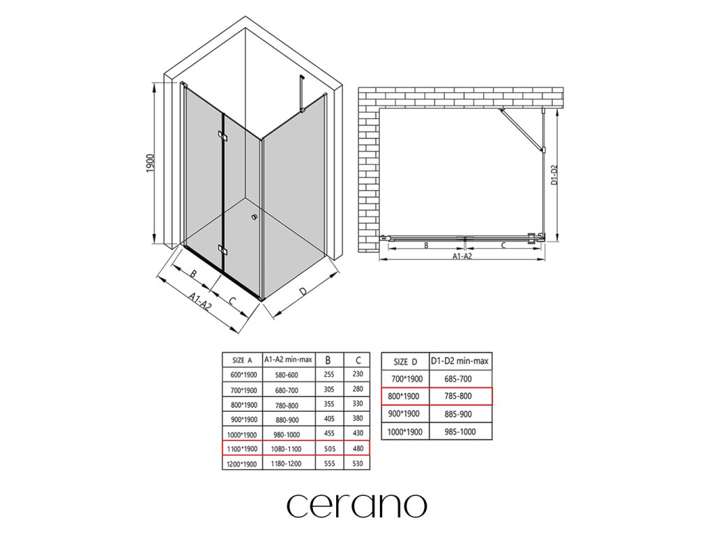 V rámci tejto série ponúkame širokú škálu rozmerov, aby sme uspokojili rôzne potreby našich zákazníkov. Všetky sprchové kúty, dvere a zásteny značky Cerano sú plne kompatibilné so sprchovými vaničkami Cerano v rovnakých rozmeroch, čo zaisťuje bezproblémovú inštaláciu a dokonalé zladenie. Sprchovací kút je možné navyše inštalovať flexibilne – buď na zodpovedajúcu sprchovú vaničku, alebo priamo na podlahu podľa vašich preferencií a možností kúpeľne.