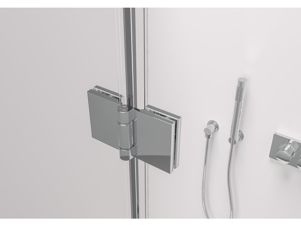Sprchovací kút je vybavený rukoväťami vyrobenými z odolnej zliatiny zinku, ktoré sú ergonomicky tvarované pre jednoduchú manipuláciu pri otváraní a zatváraní. Odolný pántový systém zaisťuje stabilitu dverí a dlhodobú funkčnosť skladacieho mechanizmu.