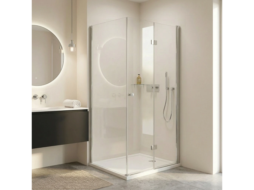 Dvere využívajú skladací (zalamovací) systém otvárania, ktorý je ideálny pre menšie kúpeľne s obmedzeným priestorom pred sprchovacím kútom. Dvere sú zavesené na zapustených pántoch so systémom pneumatického prizdvihnutia.
