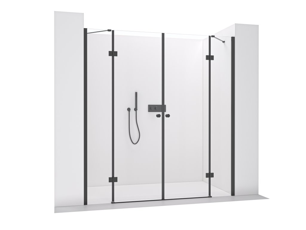 CERANO - Sprchové 2-krídlové pántové dvere Marino L/P - 6 mm - čierna matná, transparentné sklo - 218(119+99)x190 cm