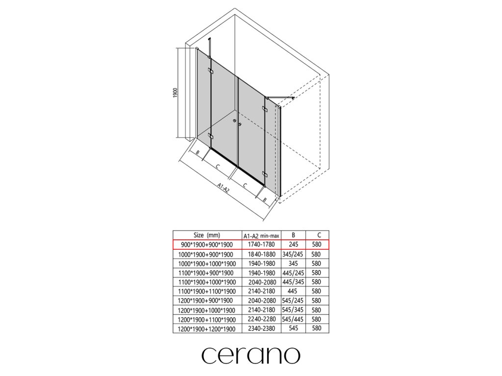 V rámci tejto série ponúkame širokú škálu rozmerov, aby sme uspokojili rôzne potreby našich zákazníkov. Všetky sprchové kúty, dvere a zásteny značky CERANO sú plne kompatibilné so sprchovými vaničkami CERANO v rovnakých rozmeroch, čo zaisťuje bezproblémovú inštaláciu a dokonalé zladenie. Sprchovací kút je možné navyše inštalovať flexibilne – buď na zodpovedajúcu sprchovú vaničku, alebo priamo na podlahu podľa vašich preferencií a možností kúpeľne.