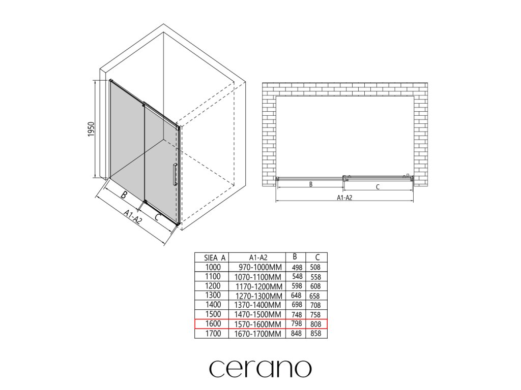 V rámci tejto série ponúkame širokú škálu rozmerov, aby sme uspokojili rôzne potreby našich zákazníkov. Všetky sprchové kúty, dvere a zásteny značky CERANO sú plne kompatibilné so sprchovými vaničkami CERANO v rovnakých rozmeroch, čo zaisťuje bezproblémovú inštaláciu a dokonalé zladenie. Sprchovací kút je možné navyše inštalovať flexibilne – buď na zodpovedajúcu sprchovú vaničku, alebo priamo na podlahu podľa vašich preferencií a možností kúpeľne.