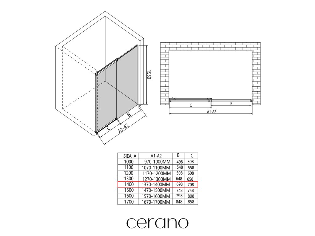 Niektoré zásteny značky CERANO je možné kombinovať s dverami z inej série, ale vo všeobecnosti to neodporúčame.