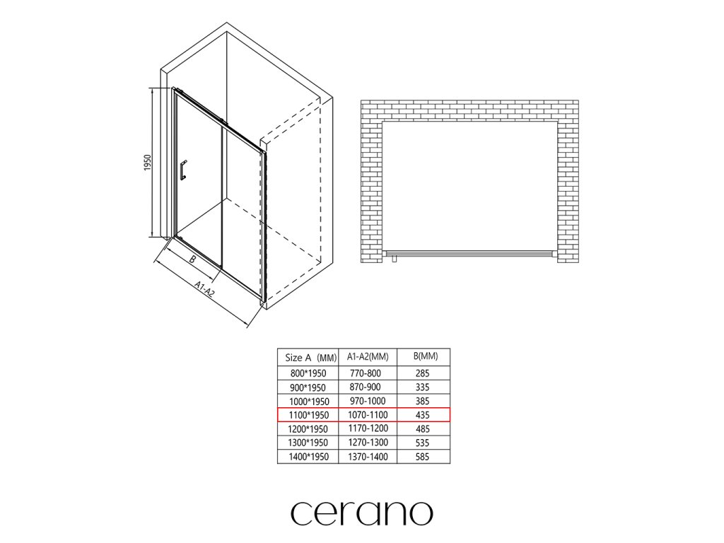 CERANO - Sprchové posuvné dvere Orlano L/P - 5 mm - čierna matná, transparentné sklo - 110x195 cm