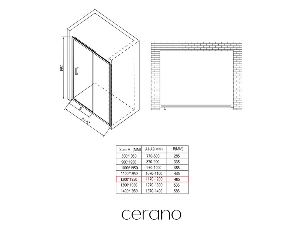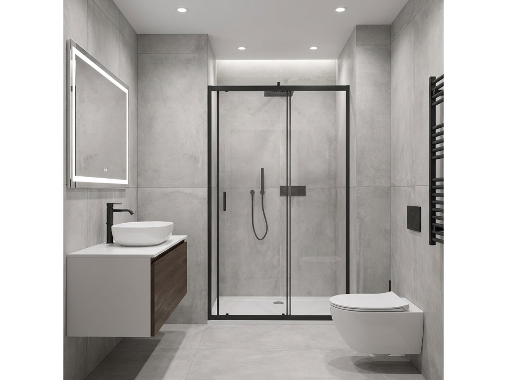 CERANO - Sprchové posuvné dvere Orlano L/P - 5 mm - čierna matná, transparentné sklo - 120x195 cm