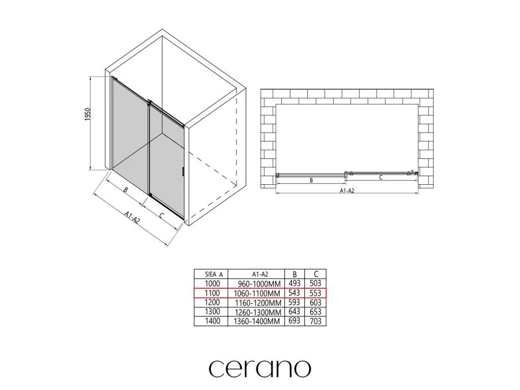 V rámci tejto série ponúkame širokú škálu rozmerov, aby sme uspokojili rôzne potreby našich zákazníkov. Všetky sprchové kúty, dvere a zásteny značky CERANO sú plne kompatibilné so sprchovými vaničkami CERANO v rovnakých rozmeroch, čo zaisťuje bezproblémovú inštaláciu a dokonalé zladenie. Sprchovací kút je možné navyše inštalovať flexibilne – buď na zodpovedajúcu sprchovú vaničku, alebo priamo na podlahu podľa vašich preferencií a možností kúpeľne.