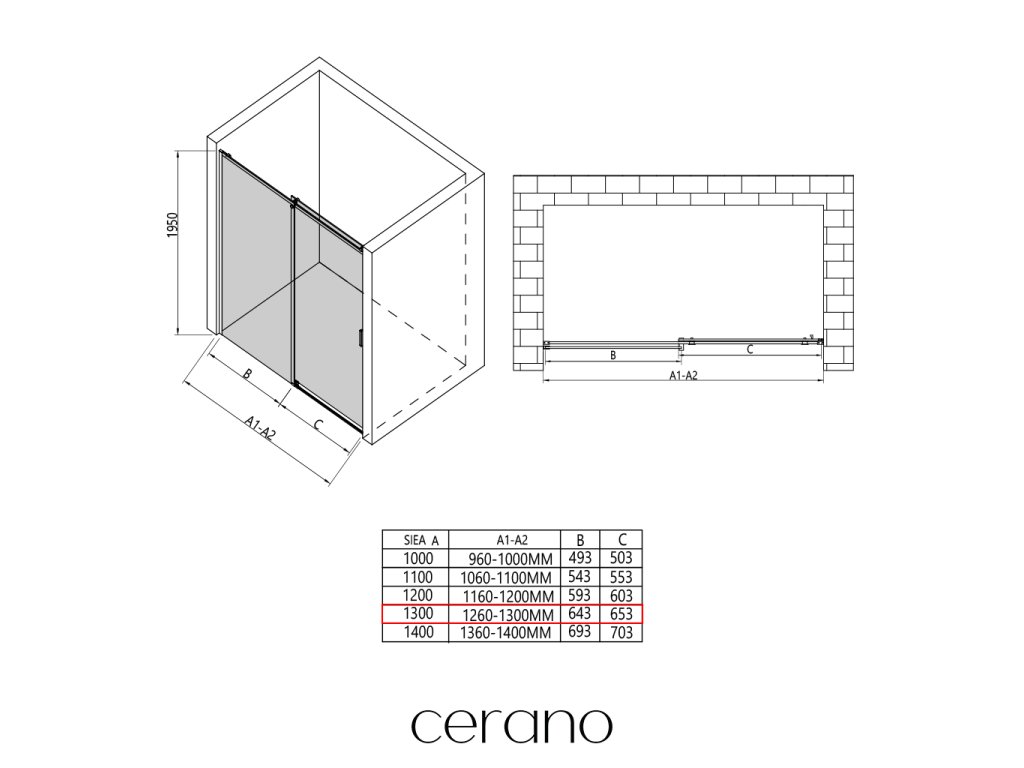 Niektoré zásteny značky CERANO je možné kombinovať s dverami z inej série, ale vo všeobecnosti to neodporúčame.