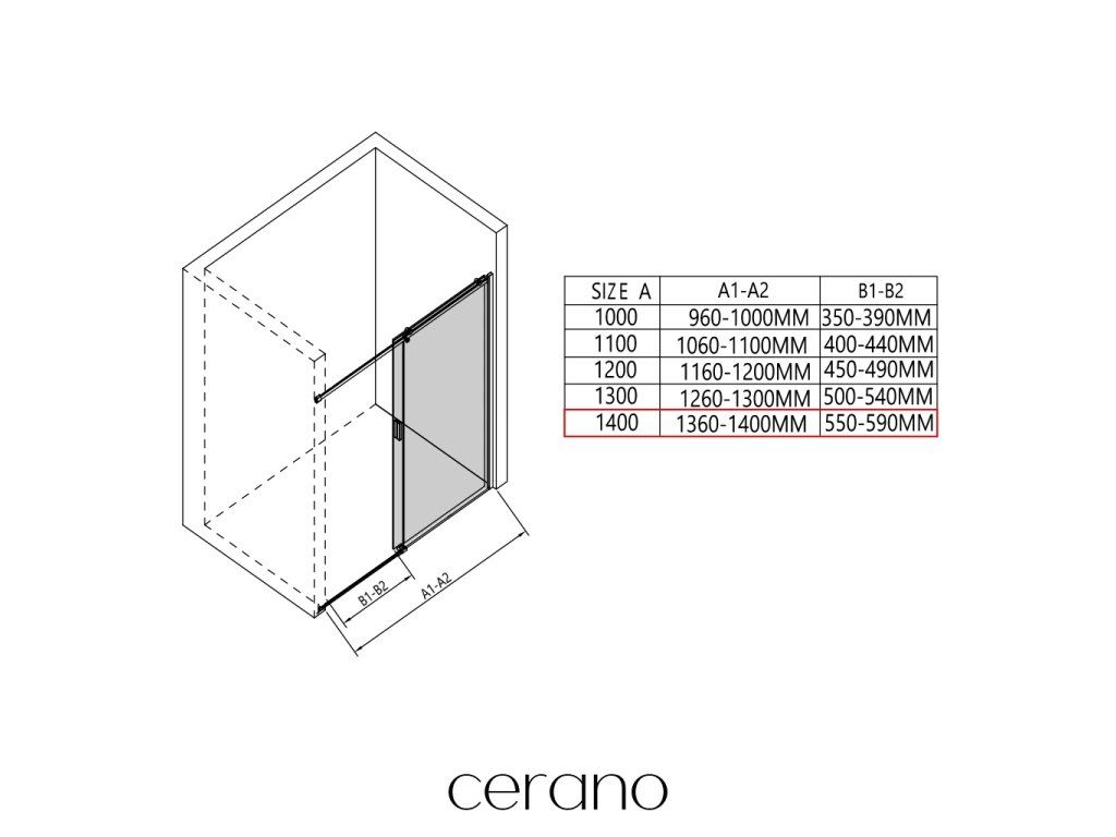 V rámci tejto série ponúkame širokú škálu rozmerov, aby sme uspokojili rôzne potreby našich zákazníkov. Všetky sprchové kúty, dvere a zásteny značky CERANO sú plne kompatibilné so sprchovými vaničkami CERANO v rovnakých rozmeroch, čo zaisťuje bezproblémovú inštaláciu a dokonalé zladenie. Sprchovací kút je možné navyše inštalovať flexibilne – buď na zodpovedajúcu sprchovú vaničku, alebo priamo na podlahu podľa vašich preferencií a možností kúpeľne.