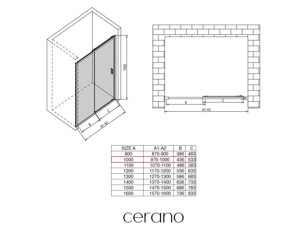 V rámci tejto série ponúkame širokú škálu rozmerov, aby sme uspokojili rôzne potreby našich zákazníkov. Všetky sprchové kúty, dvere a zásteny značky CERANO sú plne kompatibilné so sprchovými vaničkami CERANO v rovnakých rozmeroch, čo zaisťuje bezproblémovú inštaláciu a dokonalé zladenie. Sprchovací kút je možné navyše inštalovať flexibilne – buď na zodpovedajúcu sprchovú vaničku, alebo priamo na podlahu podľa vašich preferencií a možností kúpeľne.
