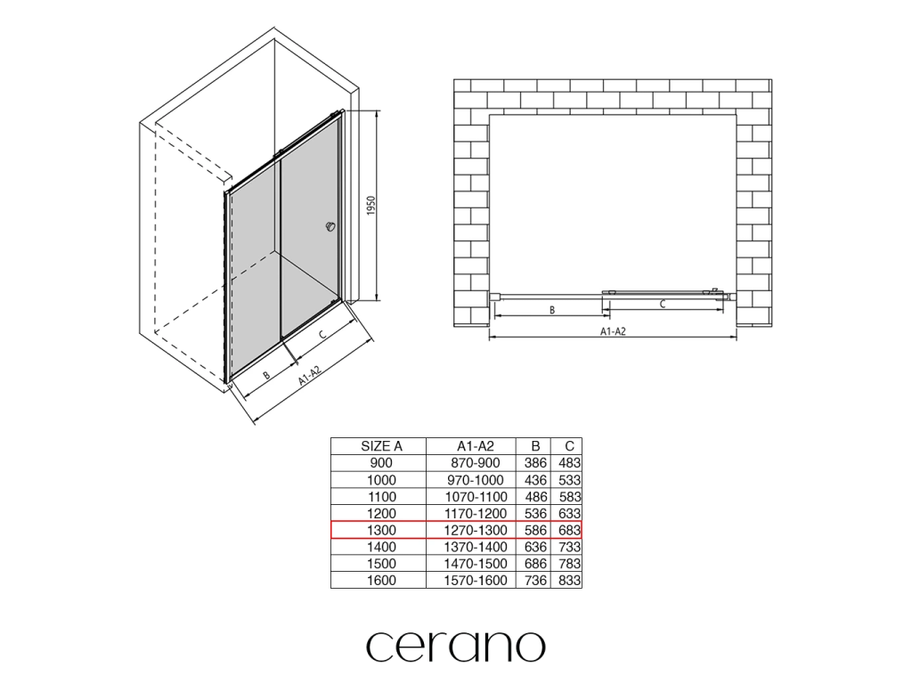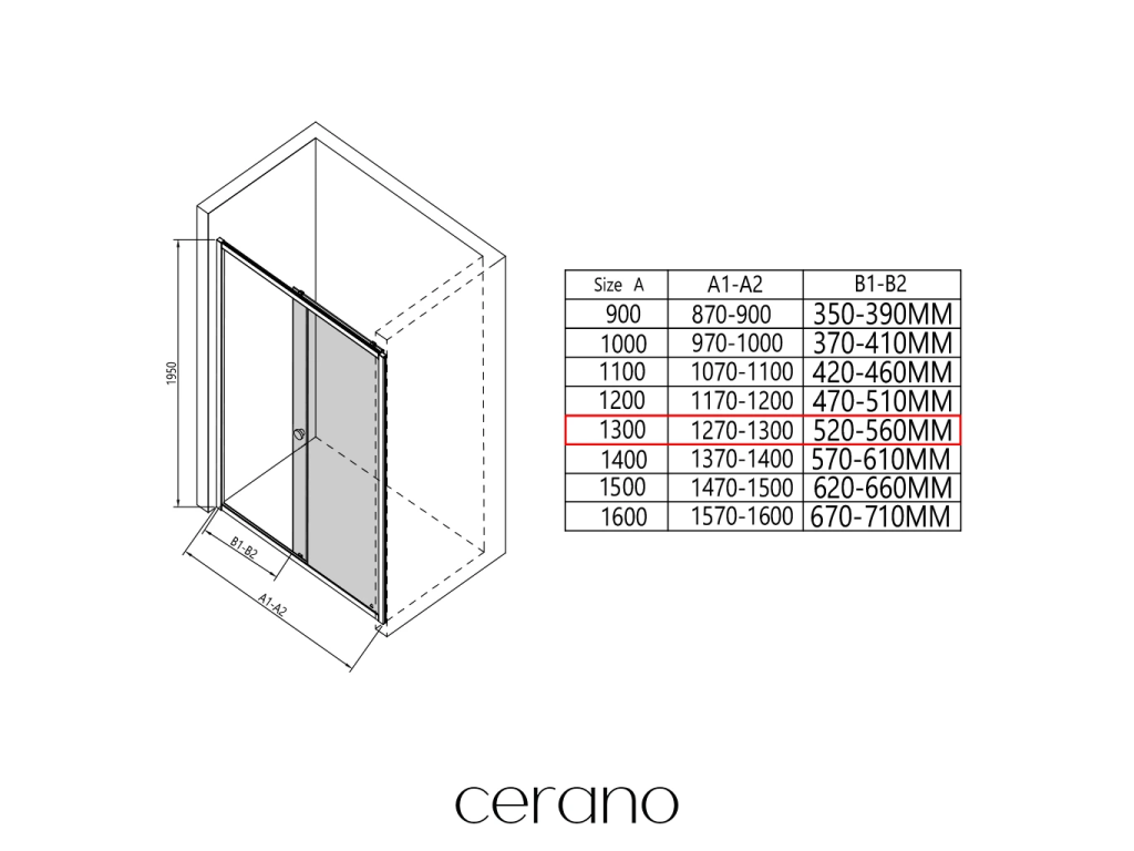 V rámci tejto série ponúkame širokú škálu rozmerov, aby sme uspokojili rôzne potreby našich zákazníkov. Všetky sprchové kúty, dvere a zásteny značky CERANO sú plne kompatibilné so sprchovými vaničkami CERANO v rovnakých rozmeroch, čo zaisťuje bezproblémovú inštaláciu a dokonalé zladenie. Sprchovací kút je možné navyše inštalovať flexibilne – buď na zodpovedajúcu sprchovú vaničku, alebo priamo na podlahu podľa vašich preferencií a možností kúpeľne.
