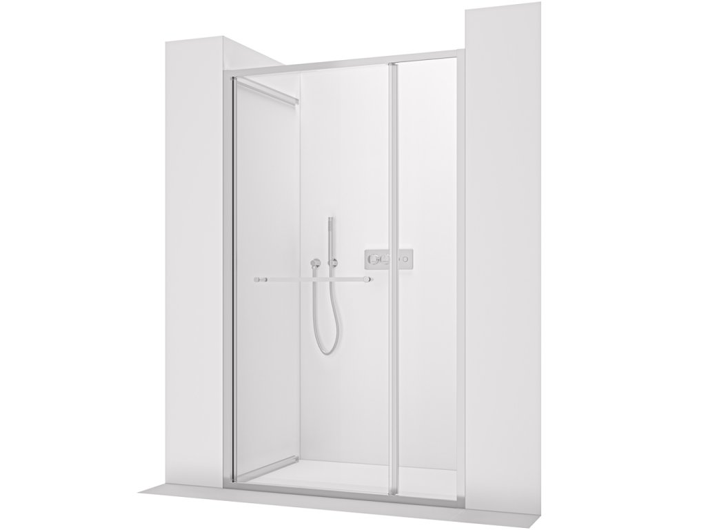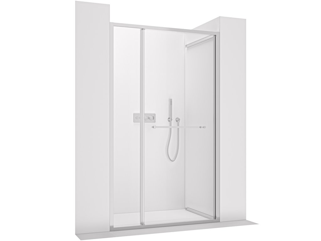 Zasúvacie dvere sa inovatívnym spôsobom zasúvajú dovnútra sprchového kúta, čím vzniká veľký vstupný priestor. Vďaka tomu dvere nezasahujú do priestoru kúpeľne. Ide o veľmi vhodné riešenie aj pre malé kúpeľne.