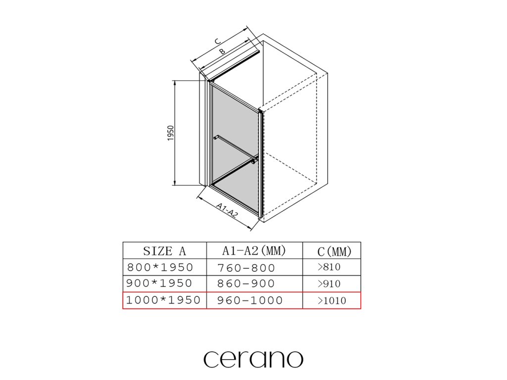 V rámci tejto série ponúkame širokú škálu rozmerov, aby sme uspokojili rôzne potreby našich zákazníkov. Všetky sprchové kúty, dvere a zásteny značky CERANO sú plne kompatibilné so sprchovými vaničkami CERANO v rovnakých rozmeroch, čo zaisťuje bezproblémovú inštaláciu a dokonalé zladenie. Sprchovací kút je možné navyše inštalovať flexibilne – buď na zodpovedajúcu sprchovú vaničku, alebo priamo na podlahu podľa vašich preferencií a možností kúpeľne.