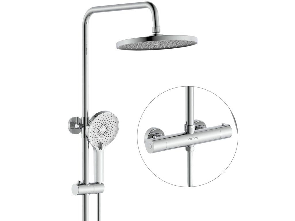 CERANO - Sprchový nástenný stĺp Selma - termostatická sprchová batéria - chróm