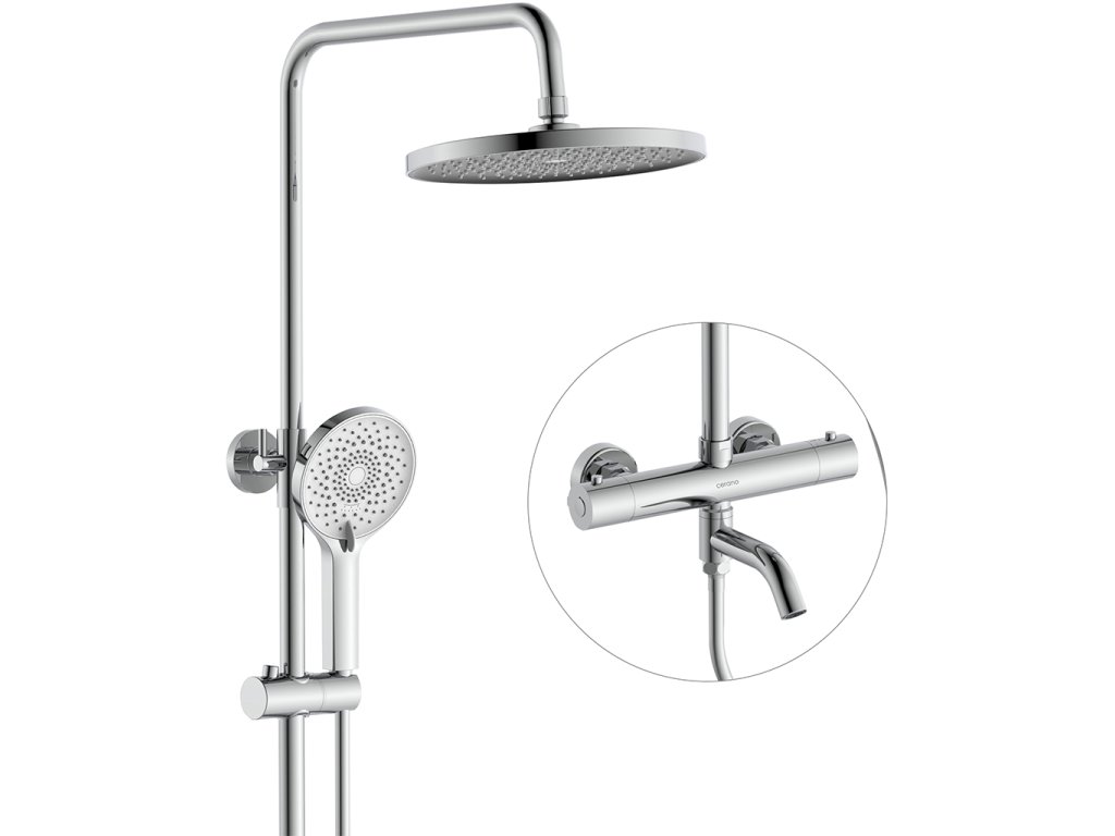 CERANO - Sprchový nástenný stĺp Selma - termostatická vaňová otočná batéria - chróm