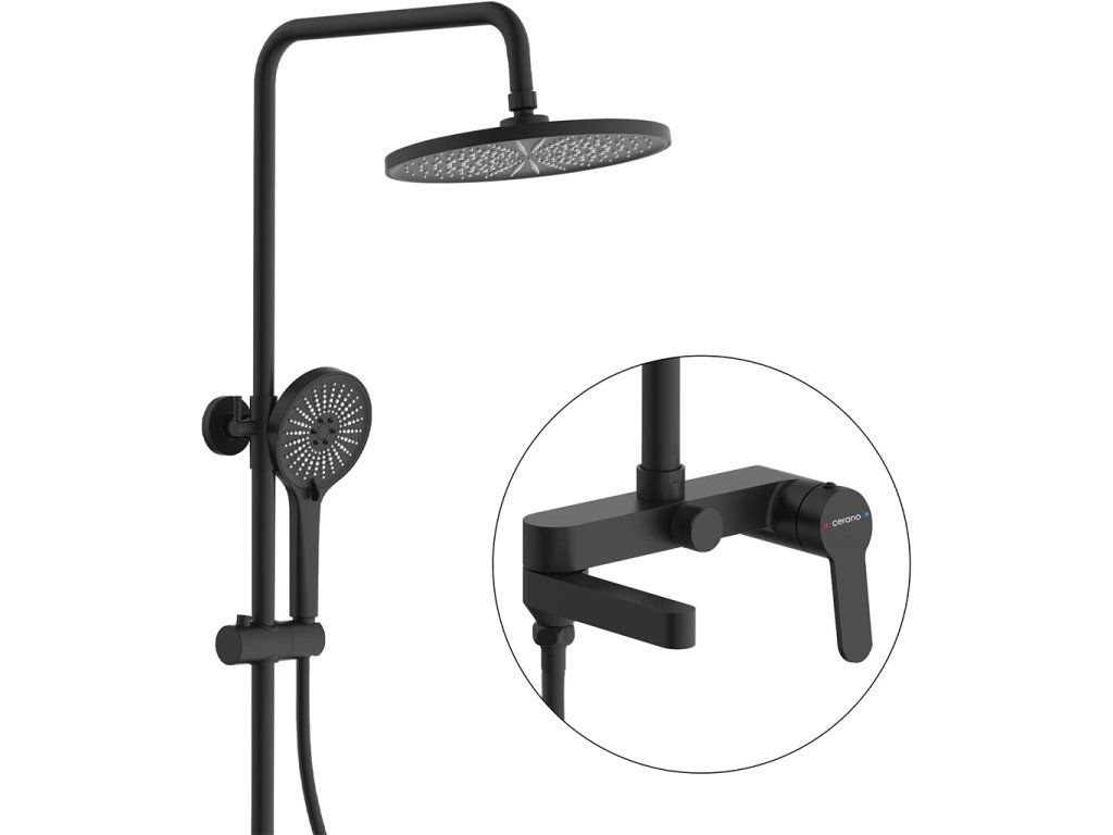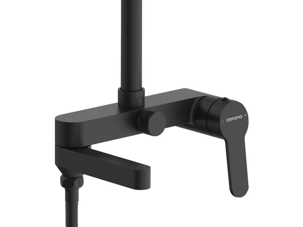 CERANO - Sprchový nástenný stĺp Velea - vaňová otočná batéria - čierna matná - 78-123 cm