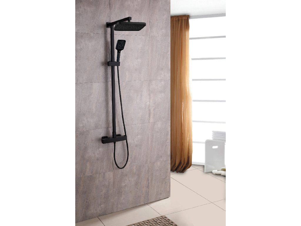 CERANO - Sprchový nástenný stĺp Vermax - termostatická sprchová batéria - čierna matná