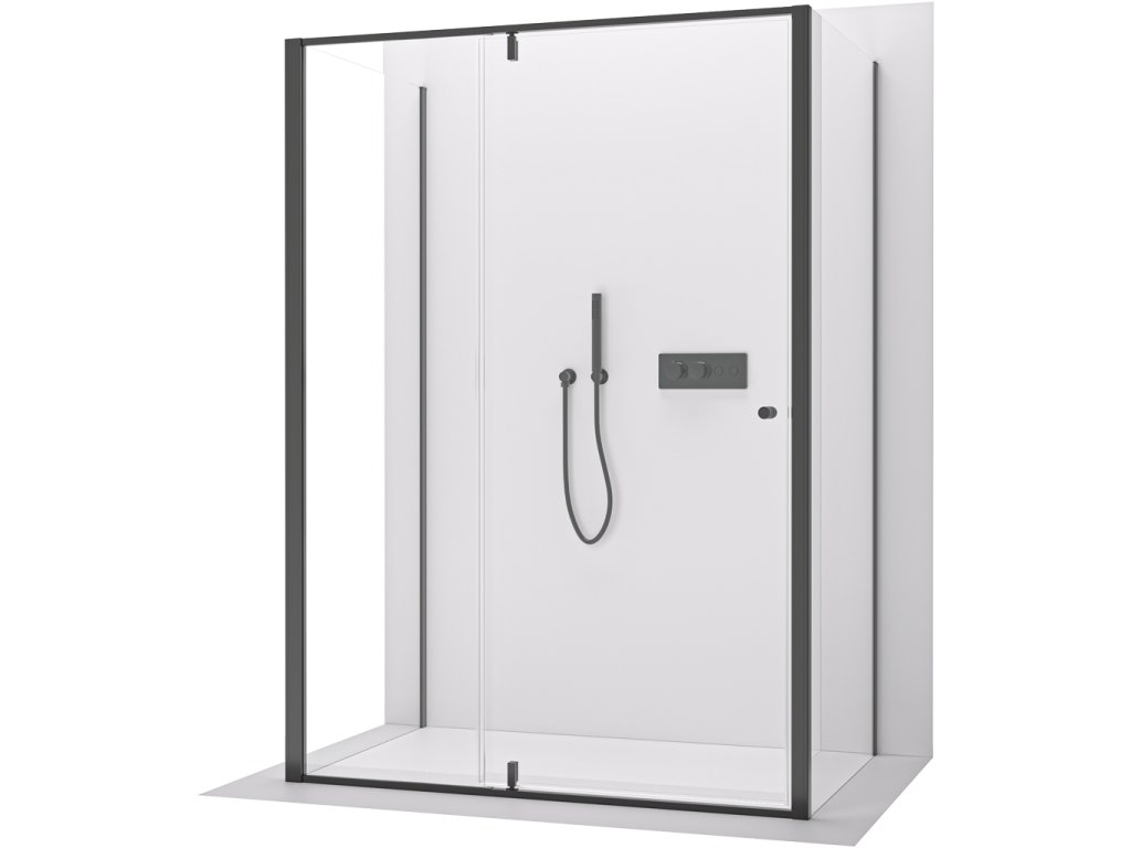CERANO - Trojstenný sprchovací kút Santini UL/P - 6 mm - čierna matná, transparentné sklo - 110x80x195 cm - pivotový
