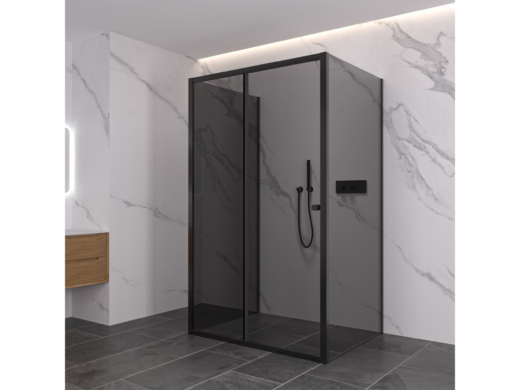 CERANO - Trojstenný sprchovací kút Varone POINT UL/P - 6 mm - čierna matná, grafitové sklo - 120x90x195 cm - posuvný