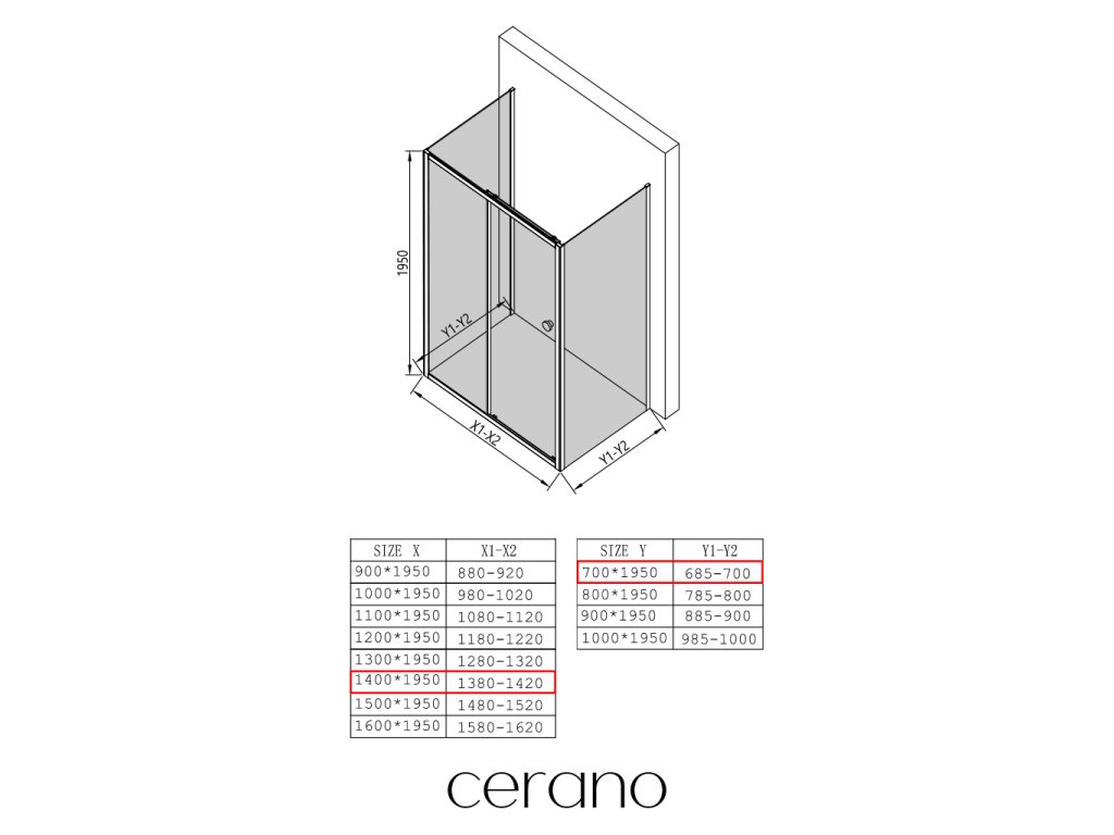 V rámci tejto série ponúkame širokú škálu rozmerov, aby sme uspokojili rôzne potreby našich zákazníkov. Všetky sprchové kúty, dvere a zásteny značky CERANO sú plne kompatibilné so sprchovými vaničkami CERANO v rovnakých rozmeroch, čo zaisťuje bezproblémovú inštaláciu a dokonalé zladenie. Sprchovací kút je možné navyše inštalovať flexibilne – buď na zodpovedajúcu sprchovú vaničku, alebo priamo na podlahu podľa vašich preferencií a možností kúpeľne.