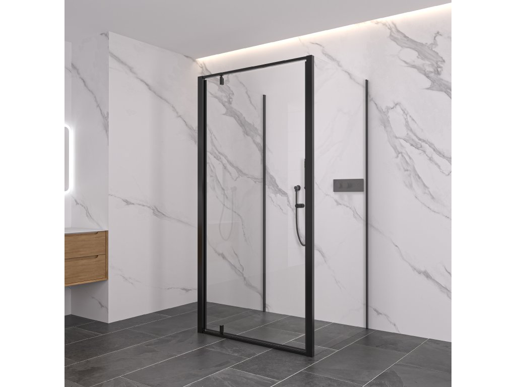 CERANO - Trostenný sprchovací kút Ferri UL/P - 6 mm - čierna matná, transparentné sklo - 80x100x195 cm - pivotový